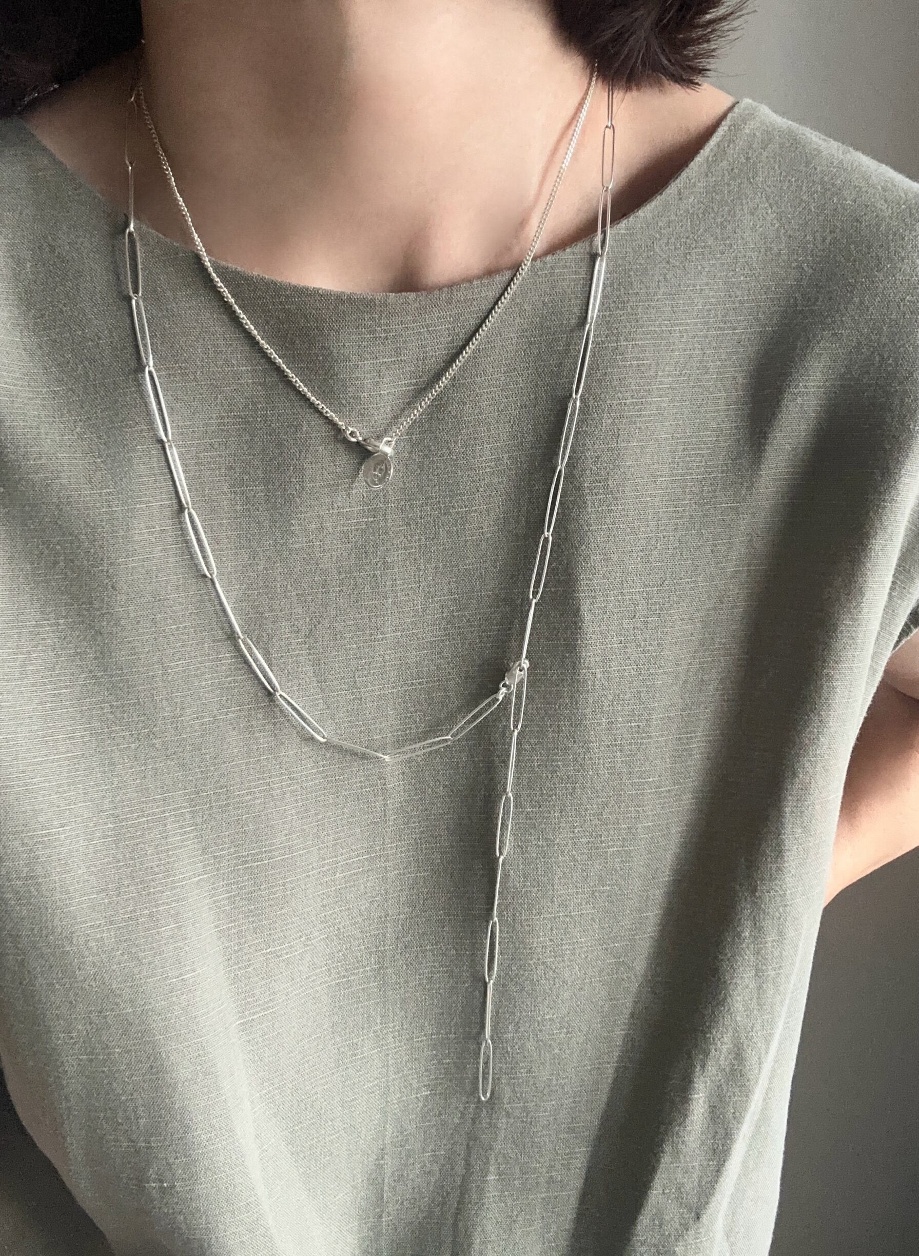 留める位置などで着け方も色々アレンジができ、短いネックレスとの相性も◎