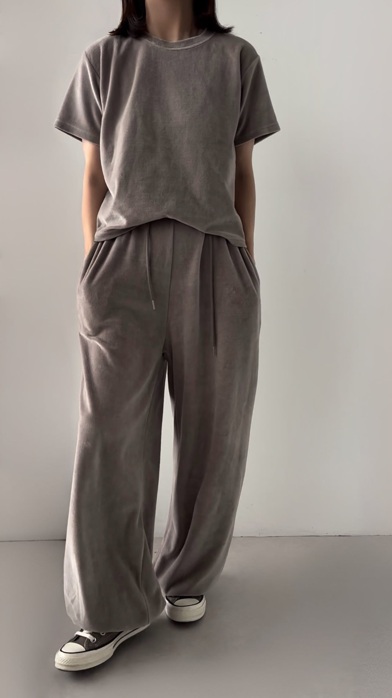 スエットと言っても一般的なスエットとは一線を画す、ありそうで無いベロアタッチの上質な素材感。