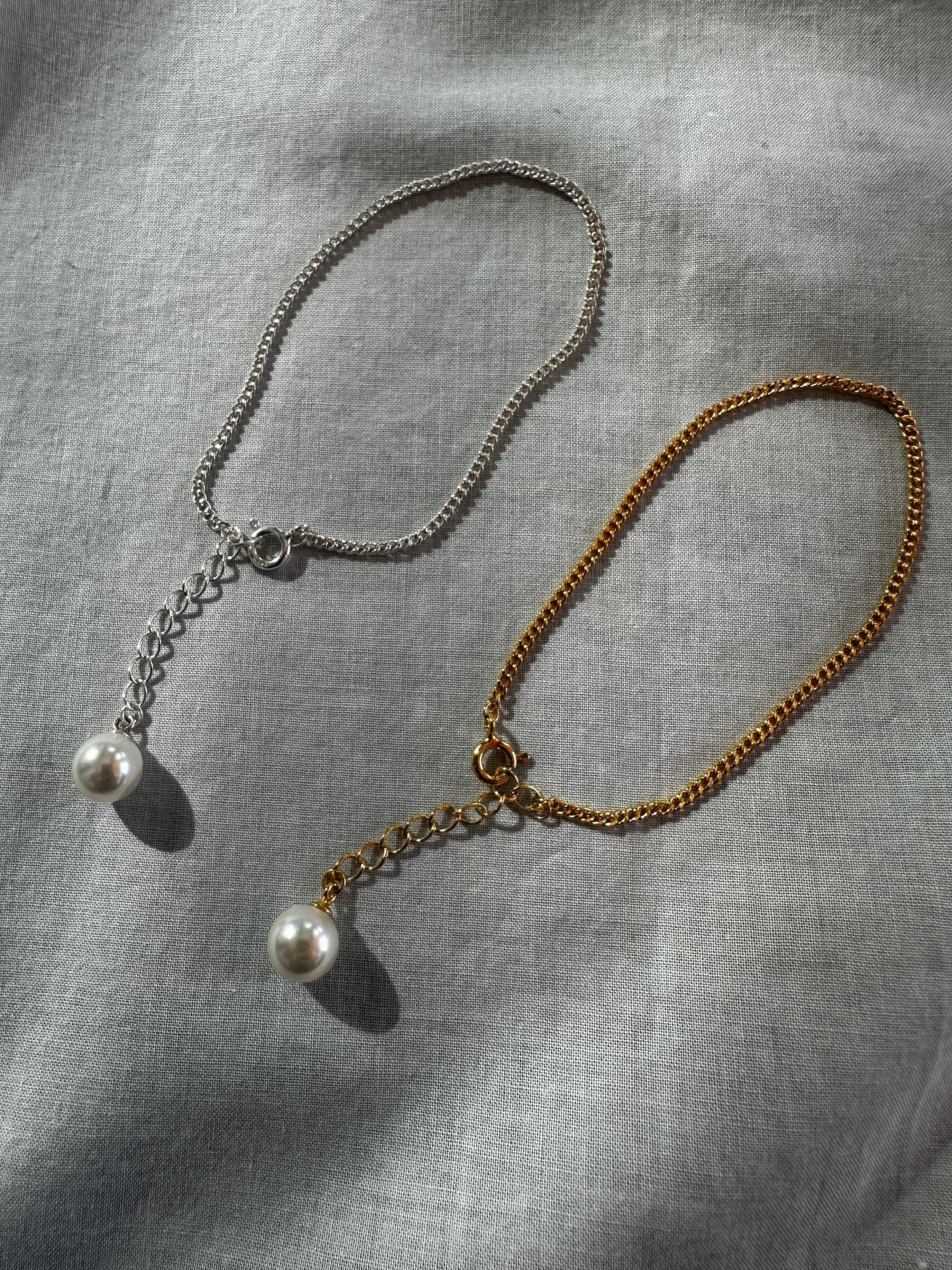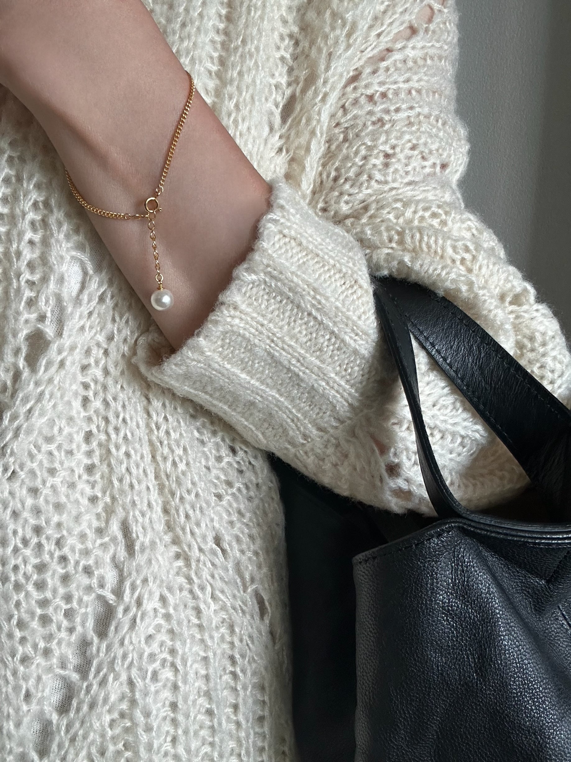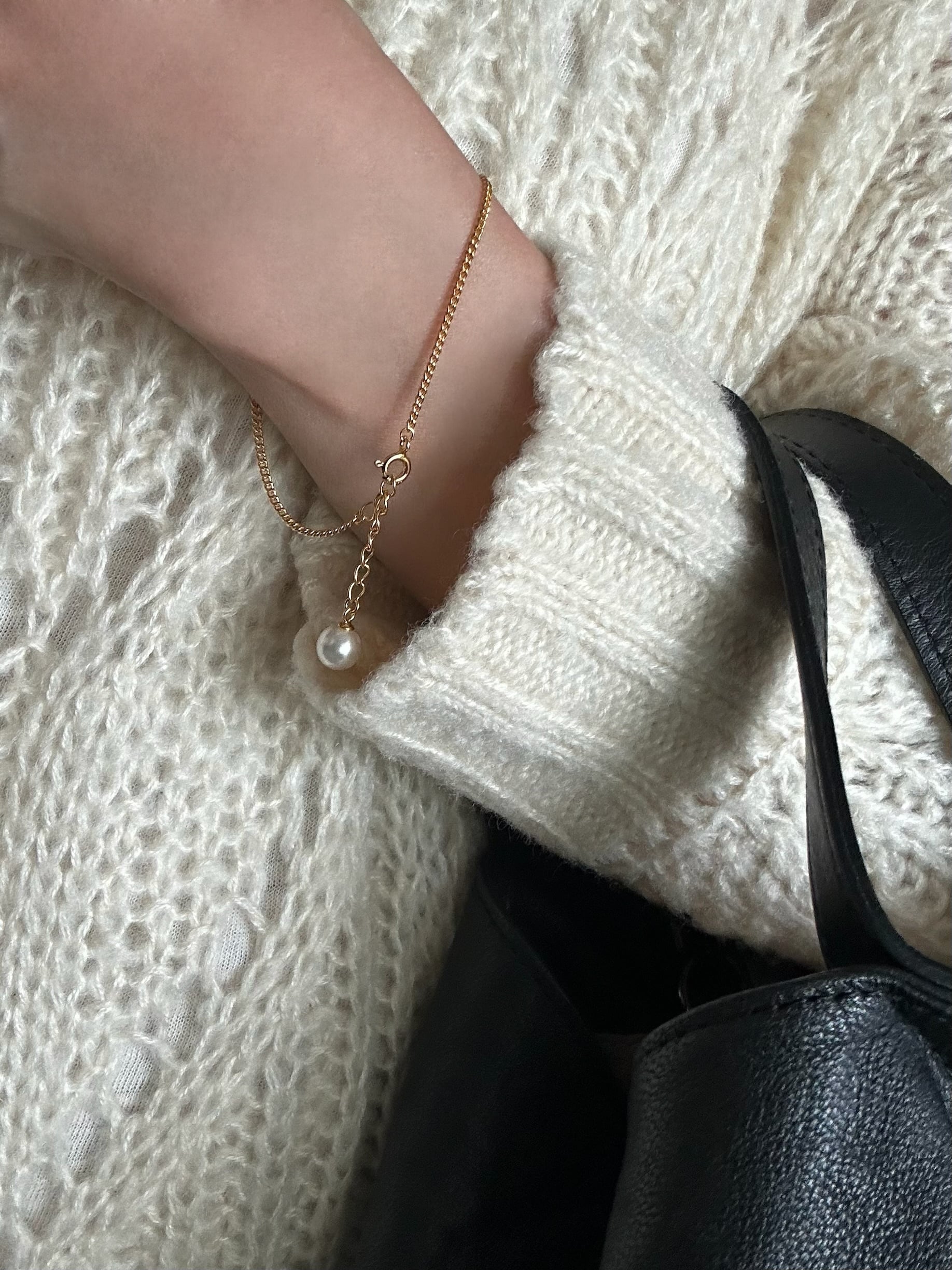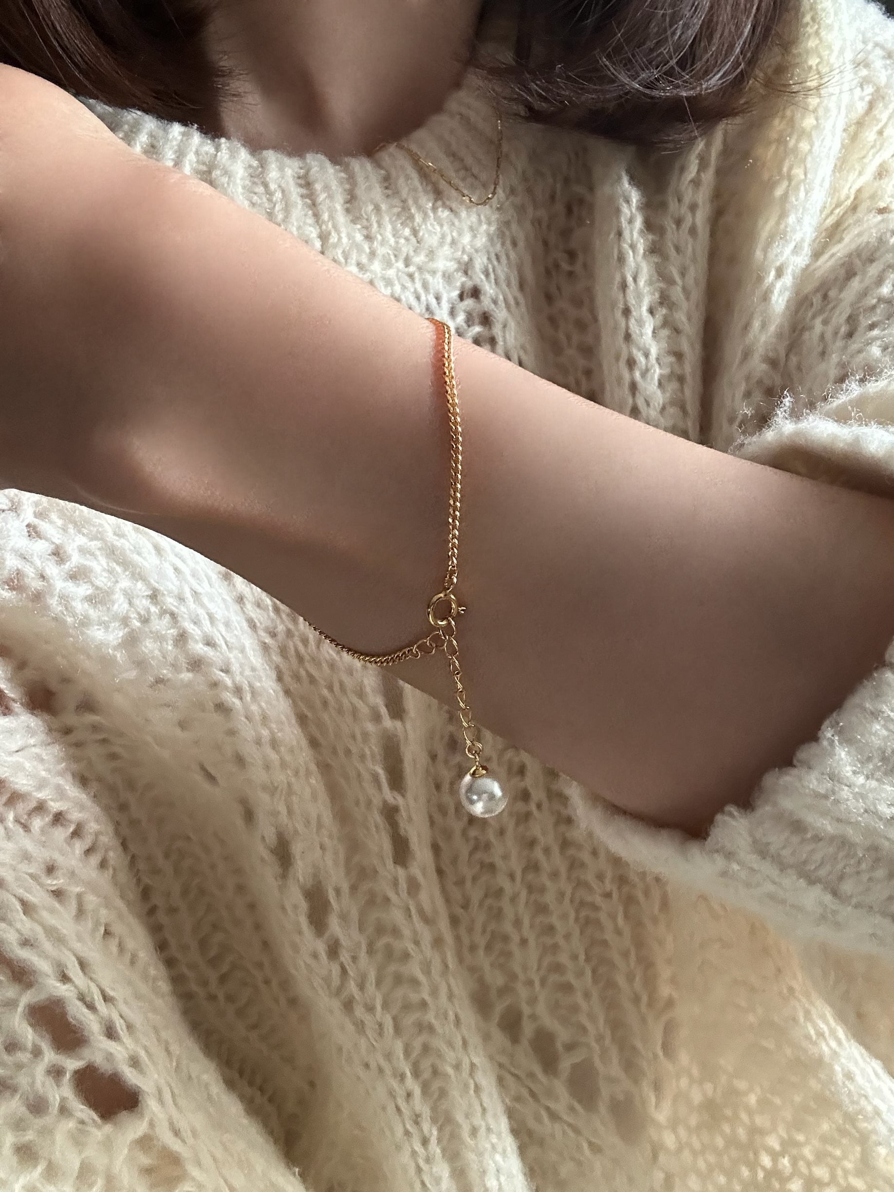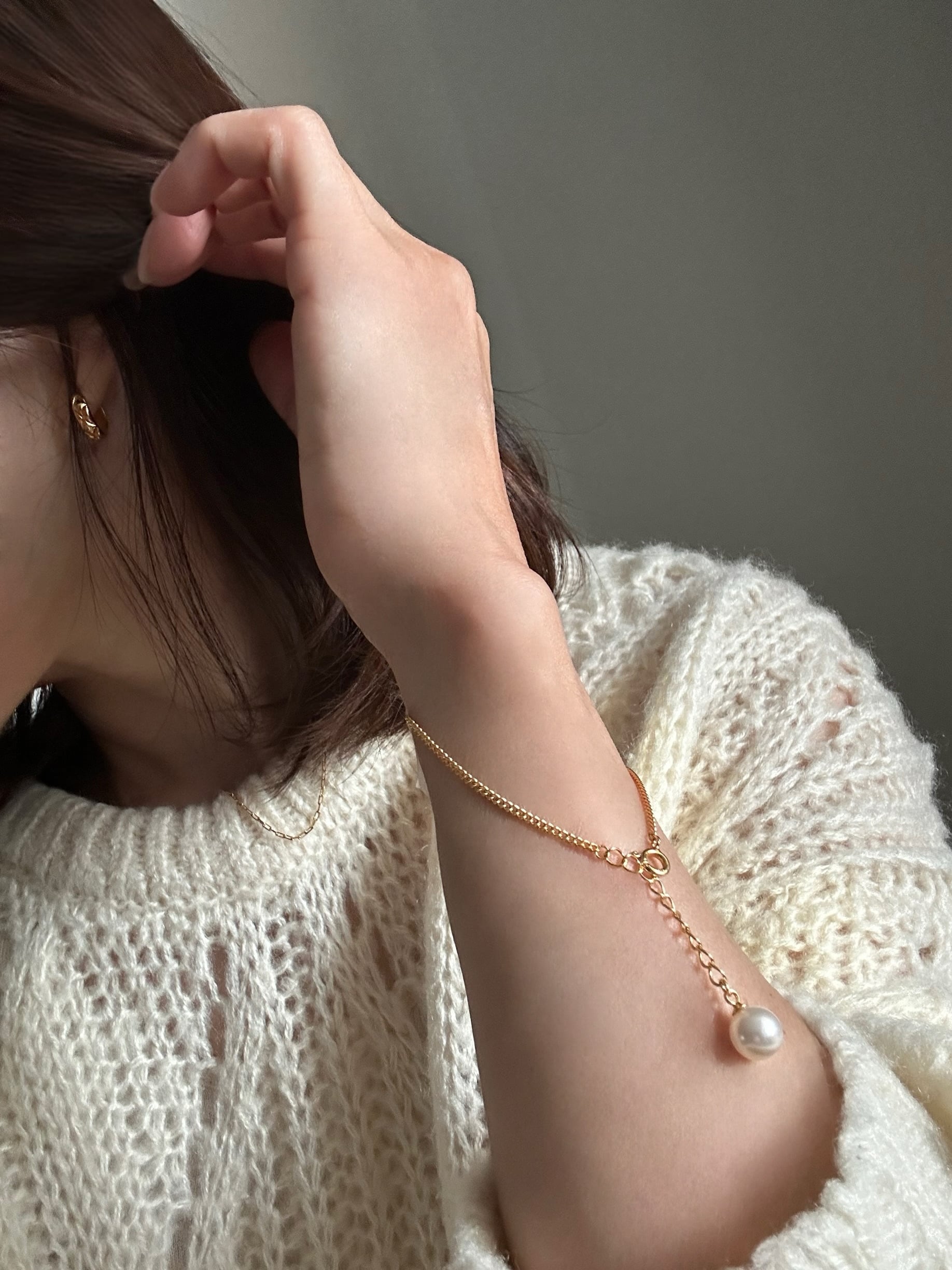 揺れるパールが手元に華やかさを添えるチェーンブレスレット。