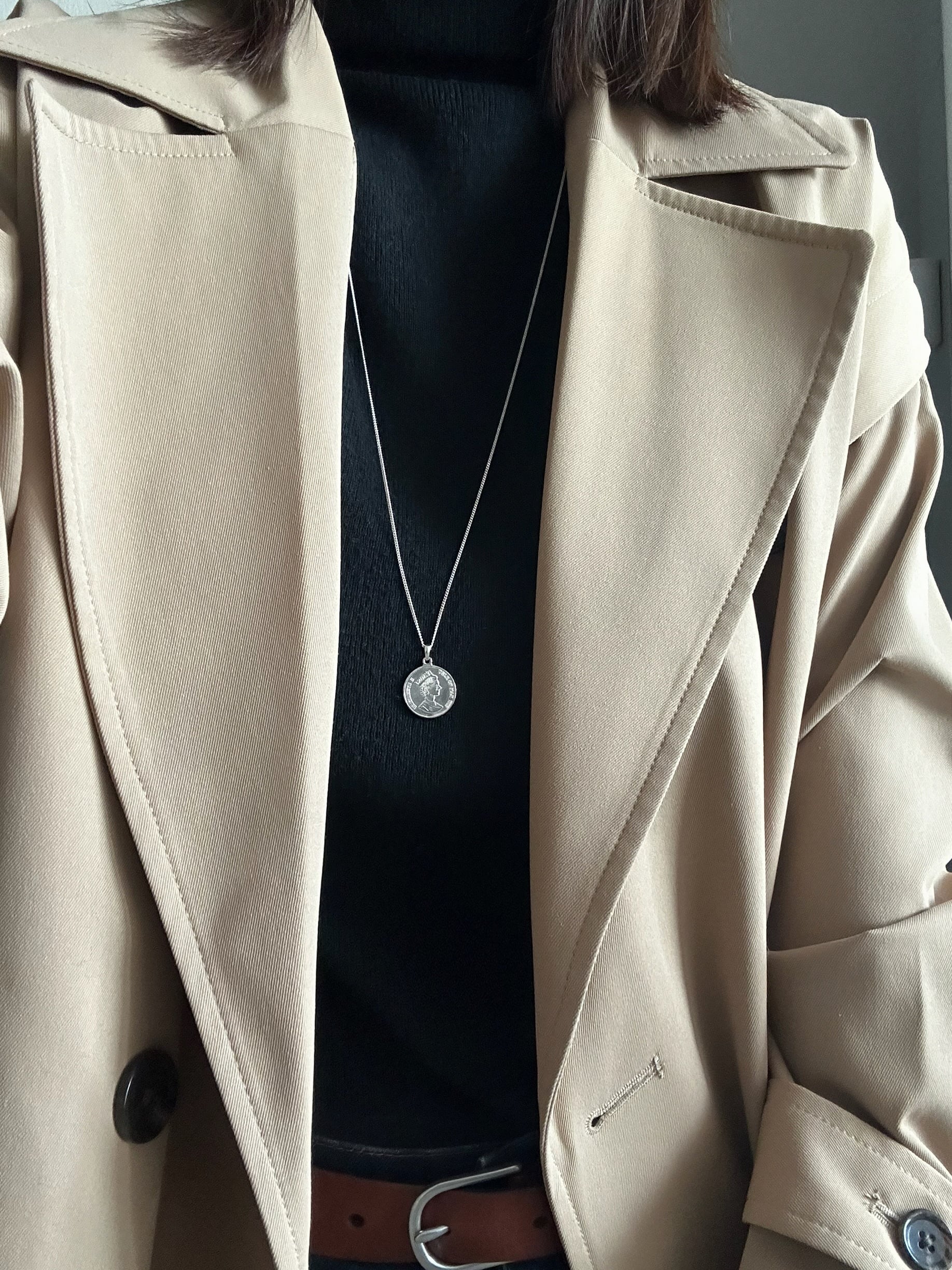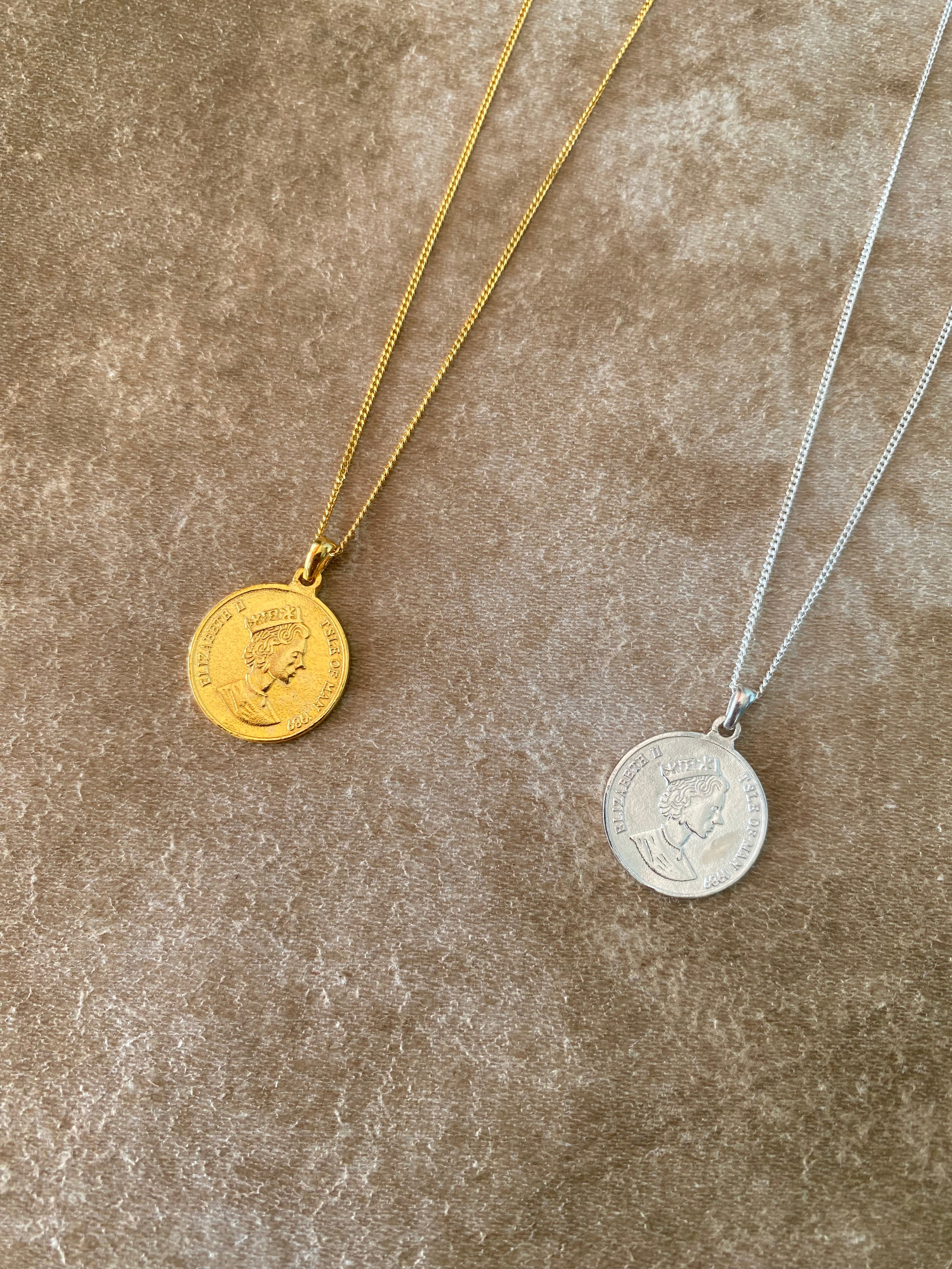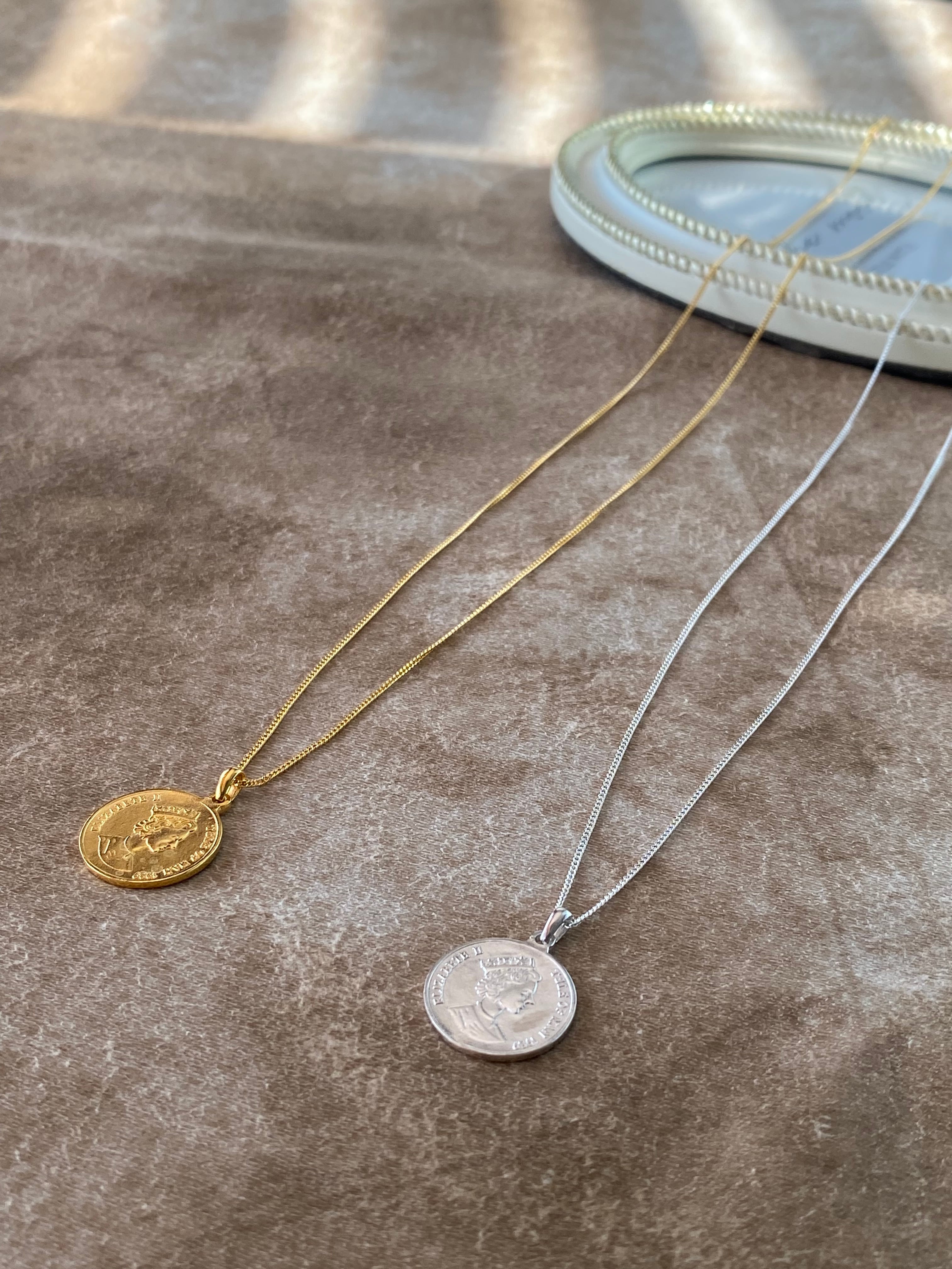 シンプルながらも洗練されたデザインで、大人の女性らしい上品さを演出するコインロングネックレス。
