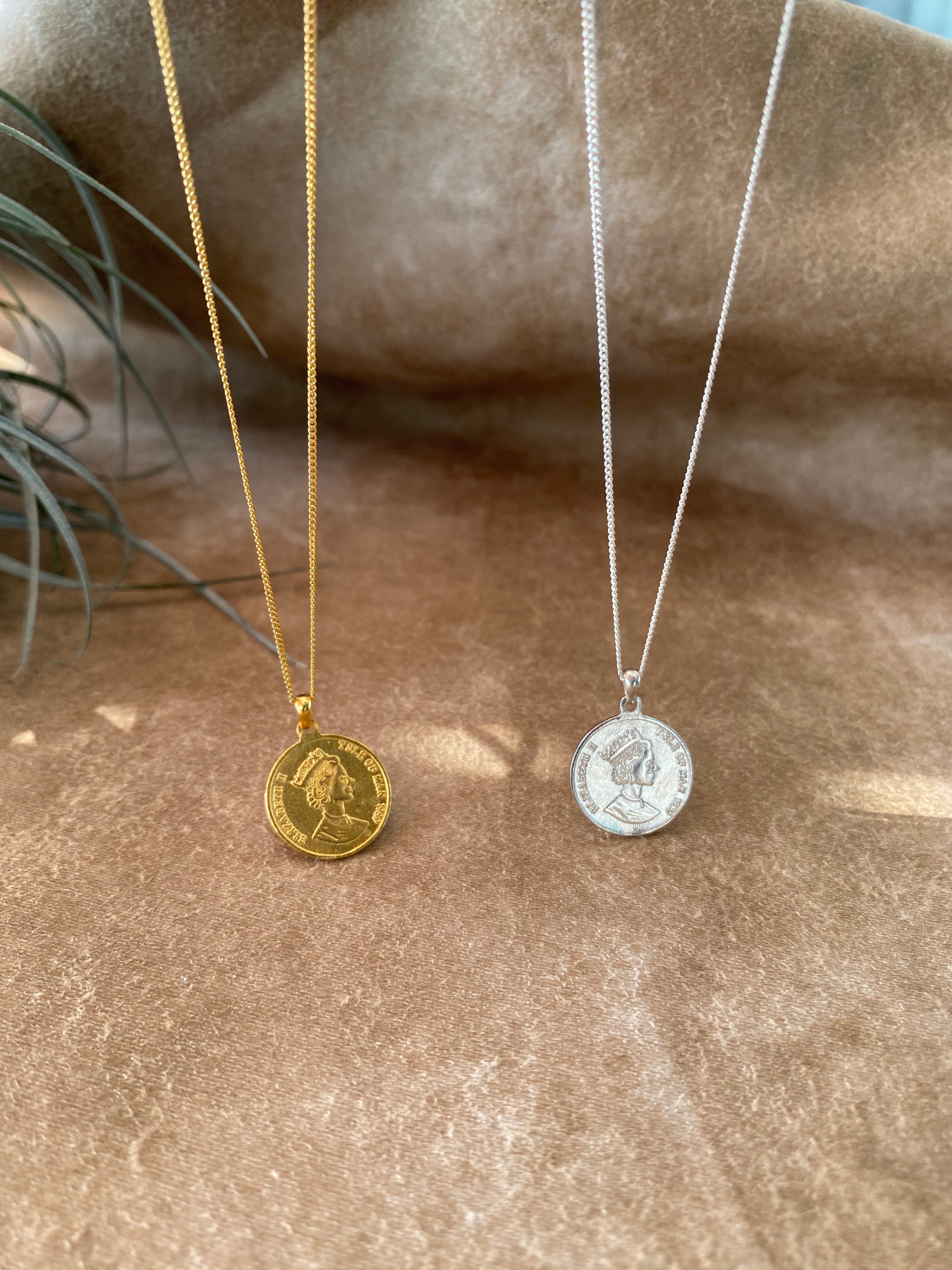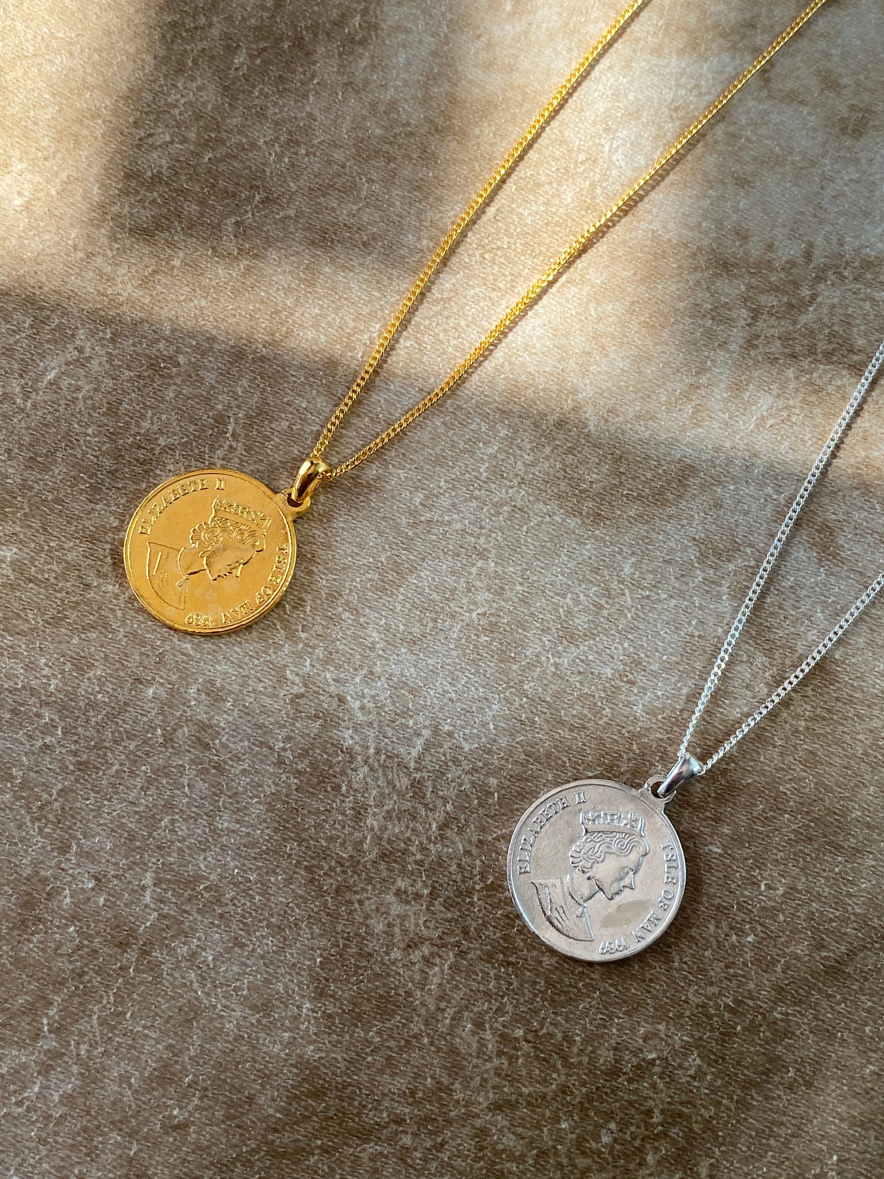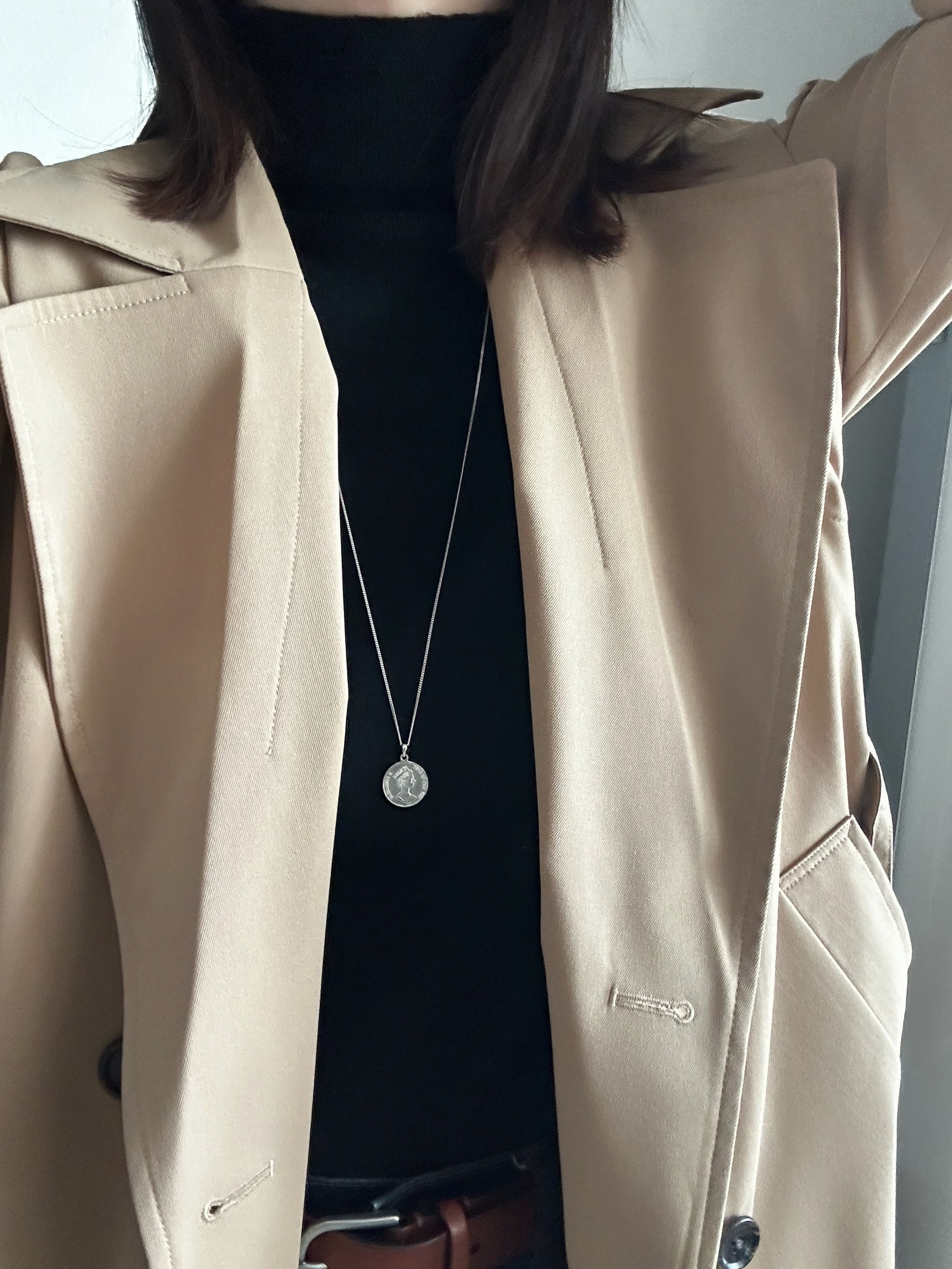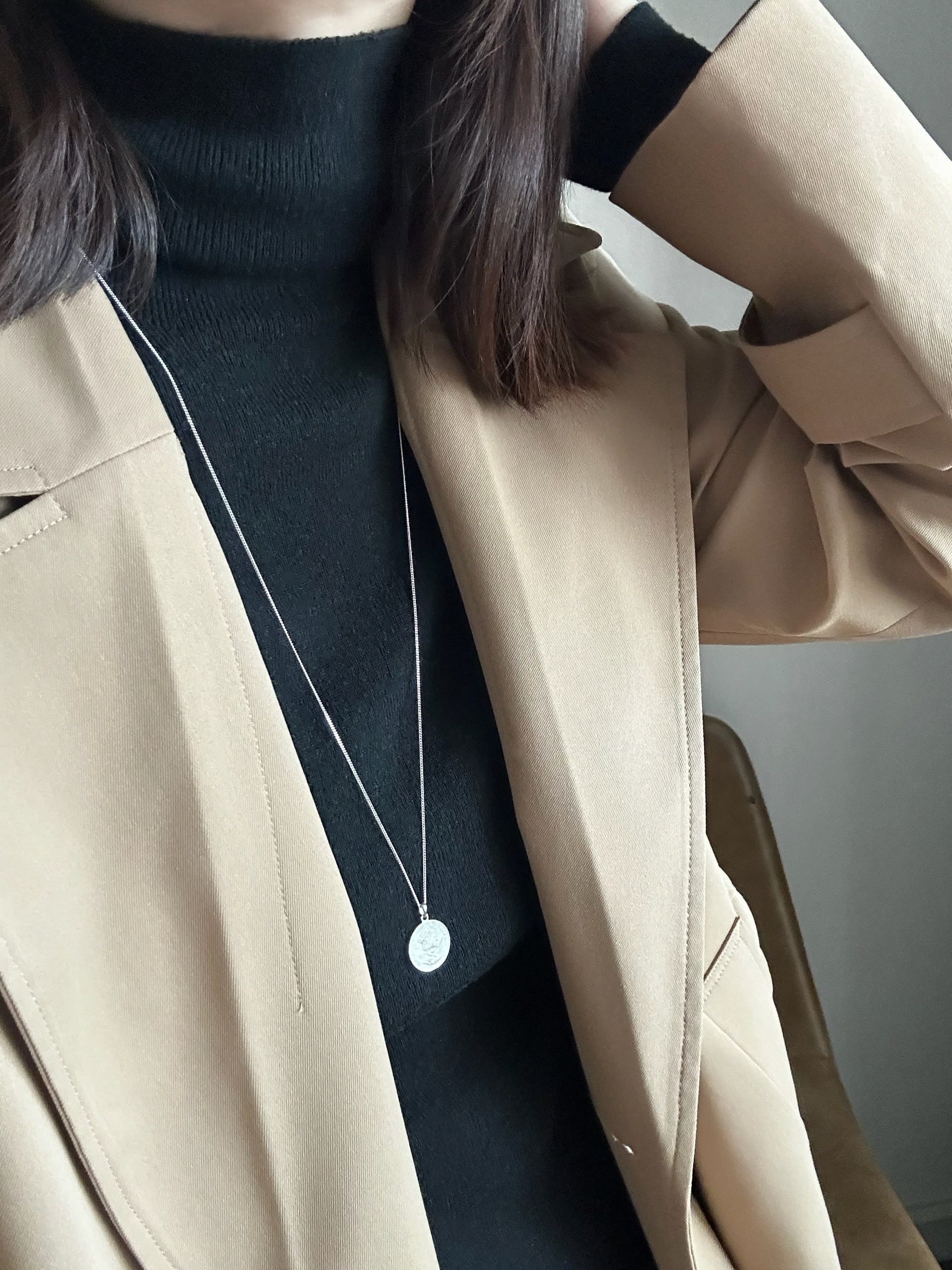 シンプルながらも洗練されたデザインで、大人の女性らしい上品さを演出するコインロングネックレス。