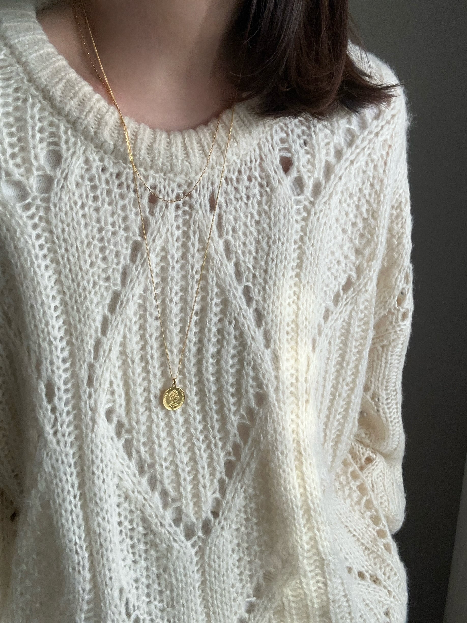 チェーンは約70cmのロングタイプで、これからの季節のニットスタイルにもさっと合わせられるアイテムです。