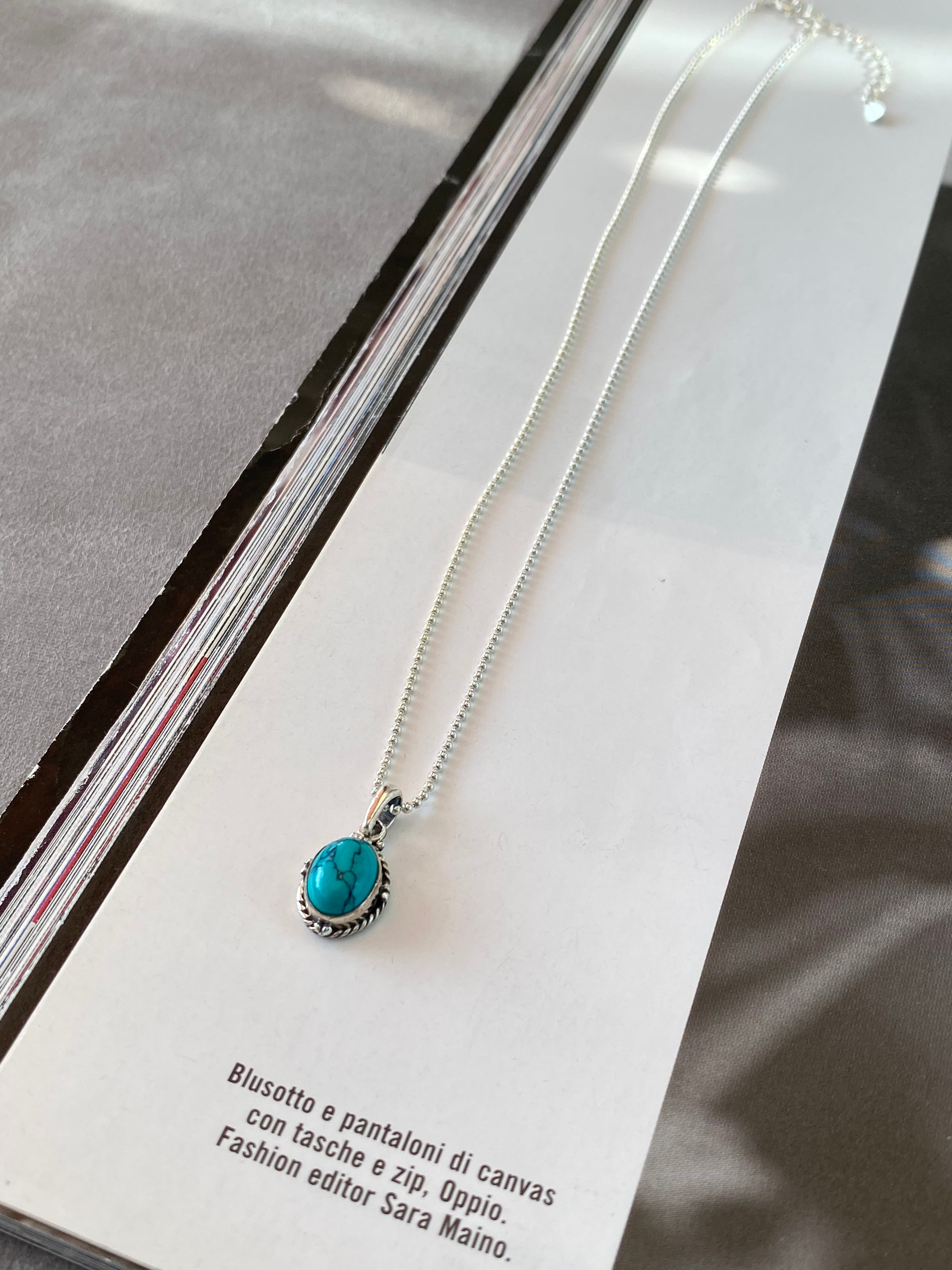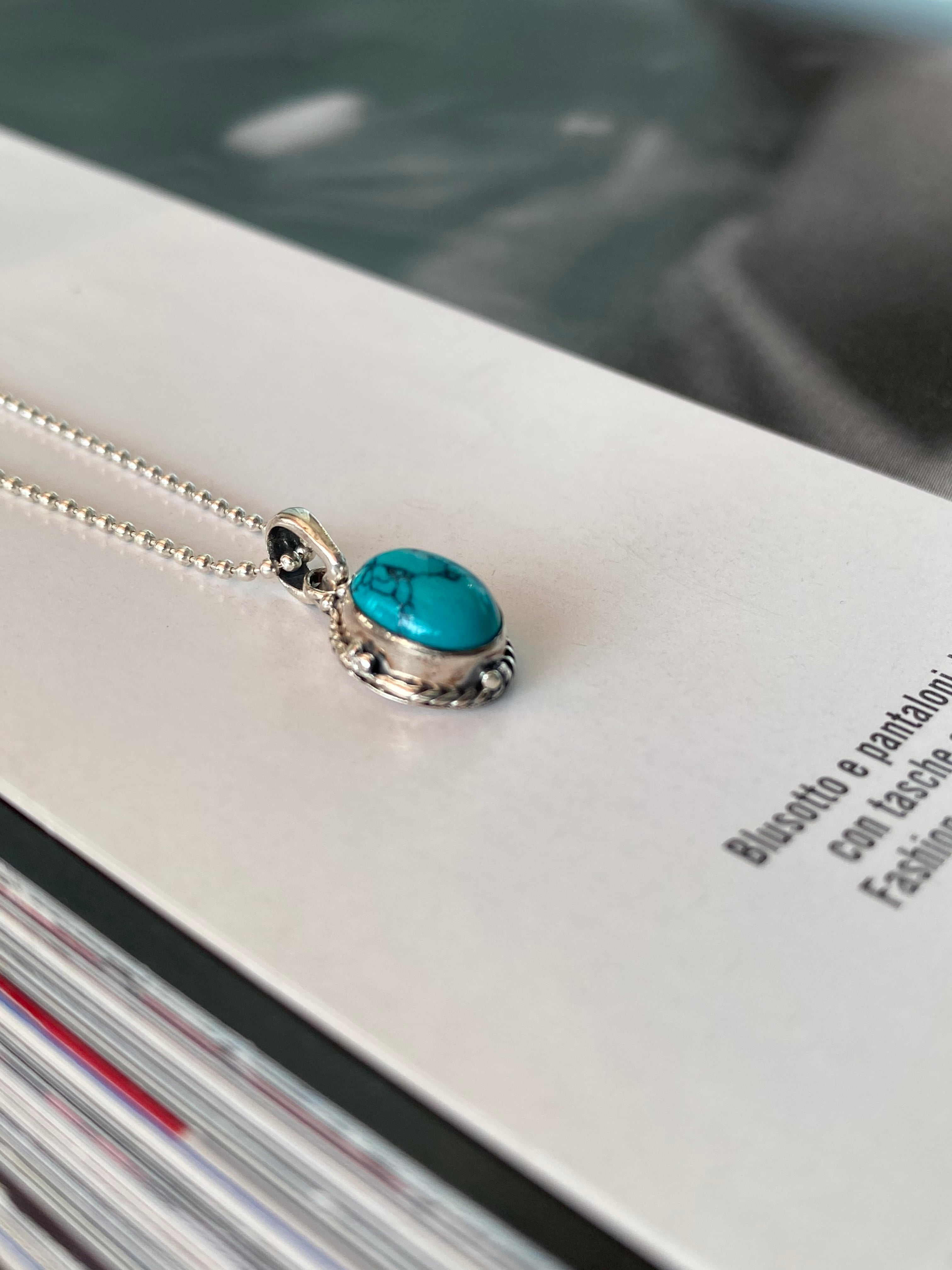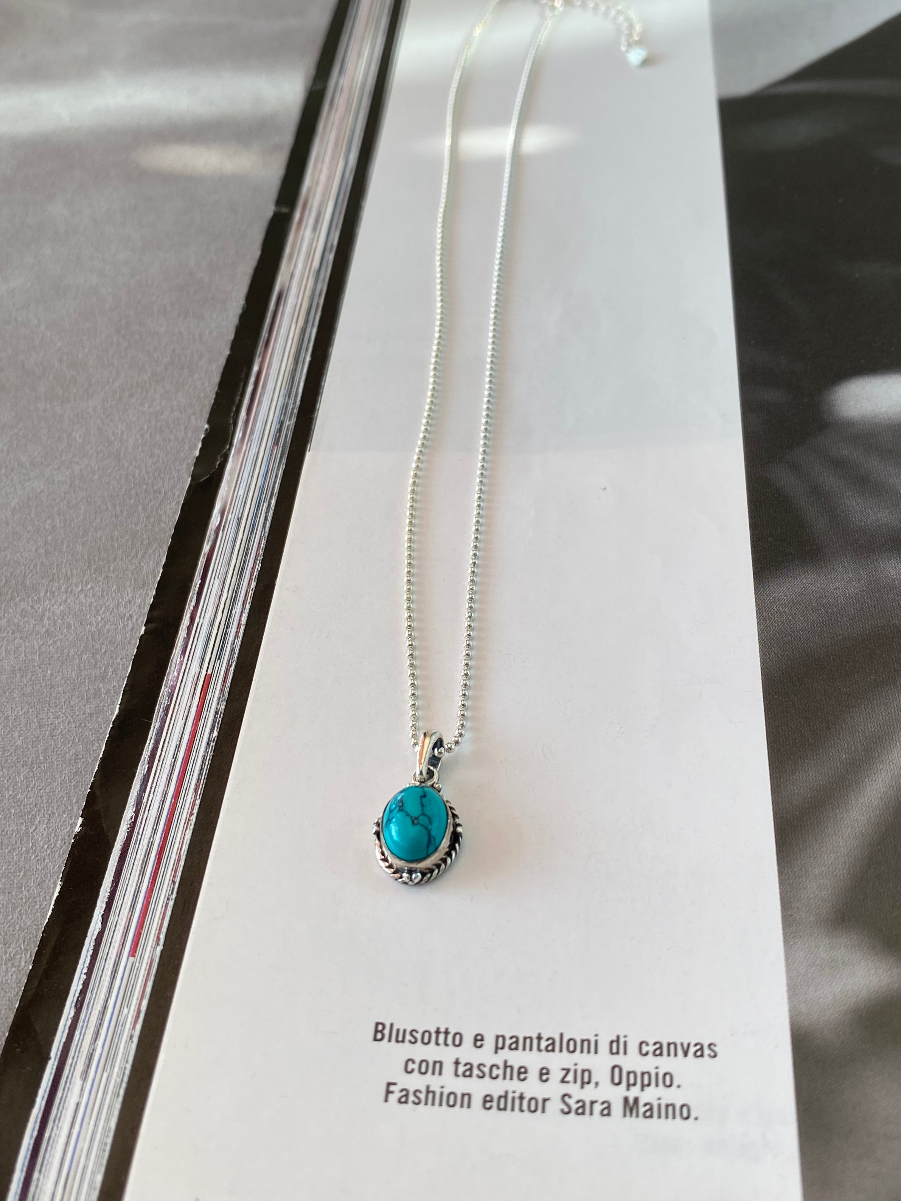 鮮やかなブルーが印象的なトルコ石のネックレス。