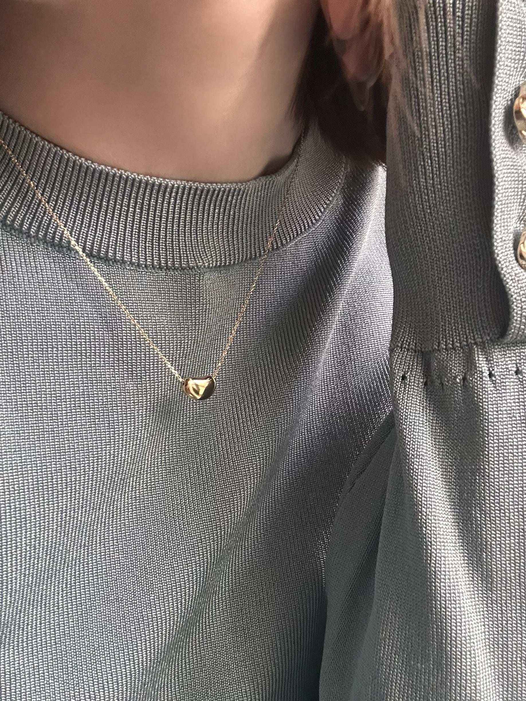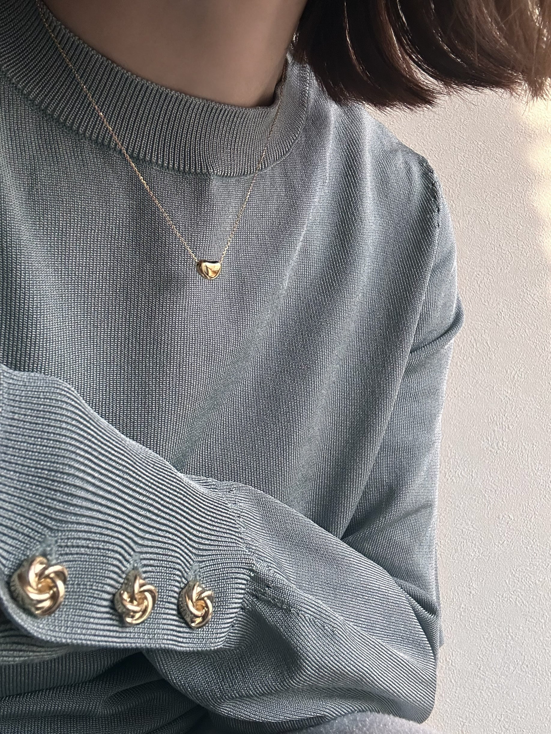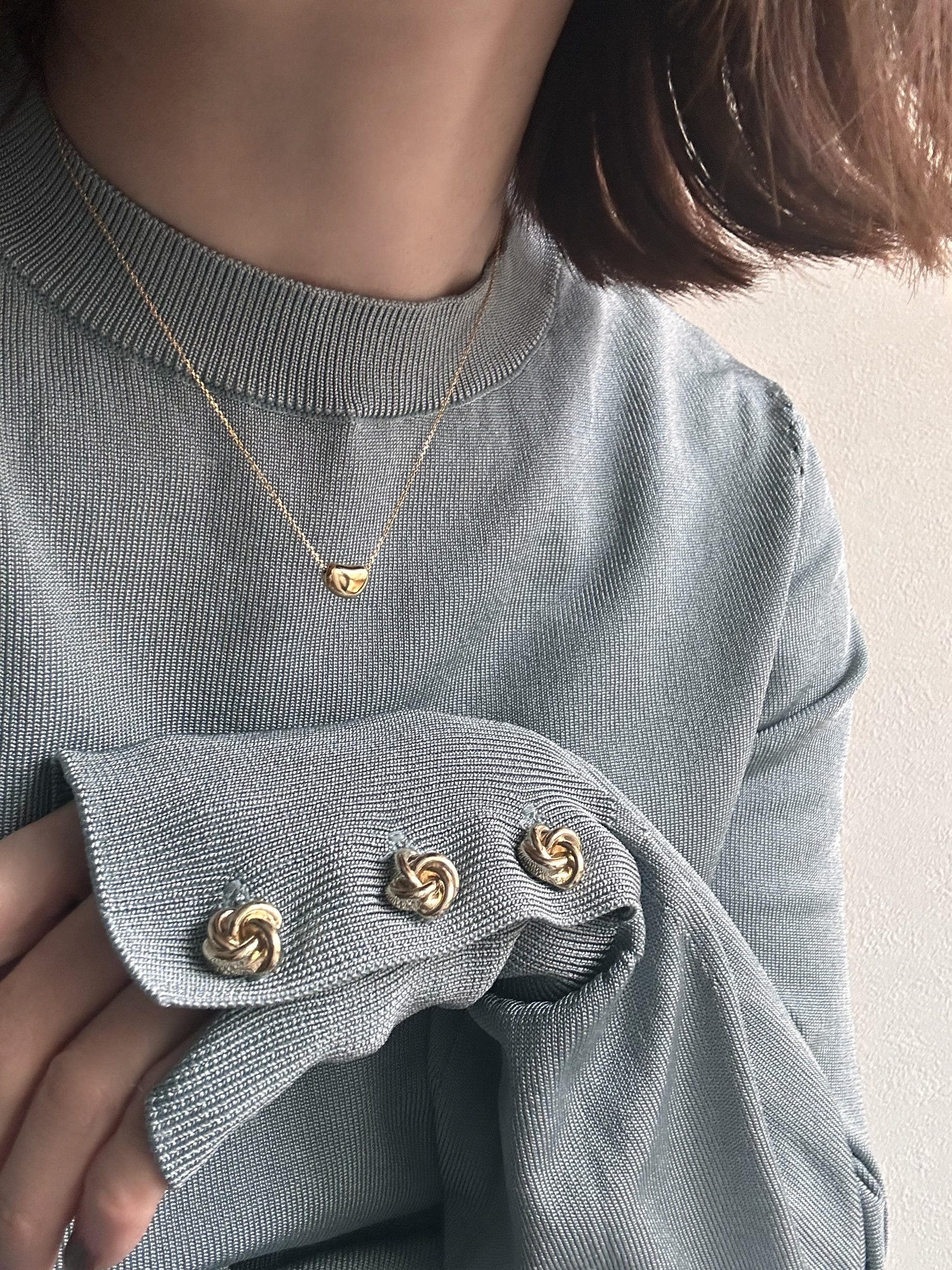 ころんとした、やさしいフォルムの小さなモチーフがさりげなく首元を彩ります。