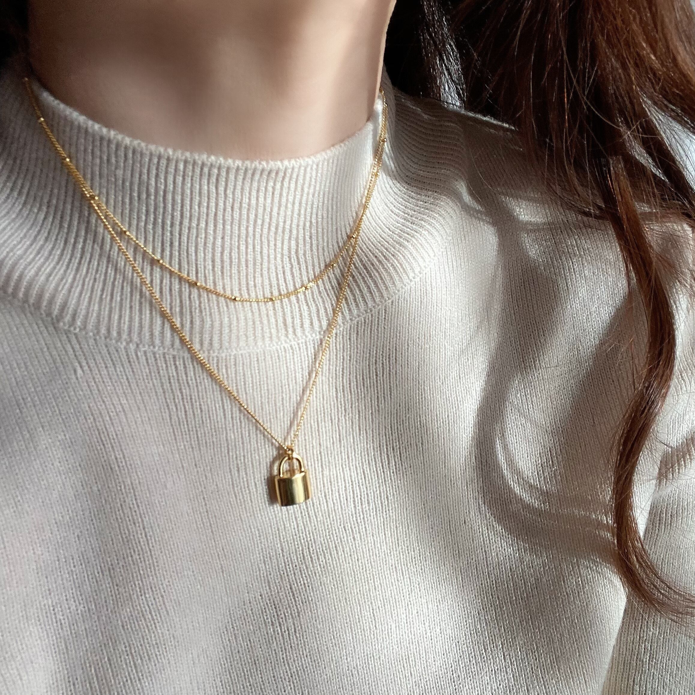 南京錠の形をしたモチーフがとっても可愛いく、これだけでもインパクトがありますが、重ね付けしてもオシャレですね!