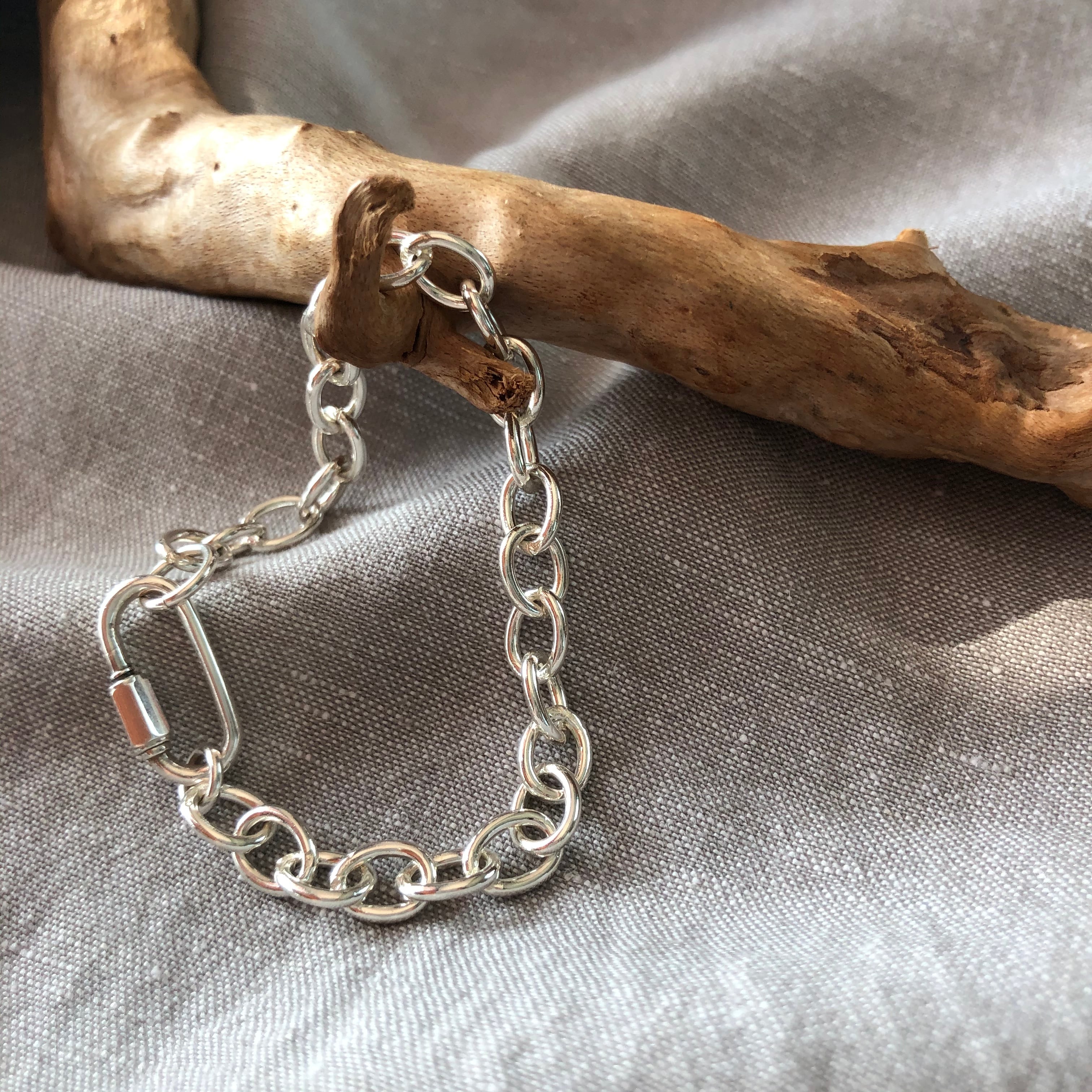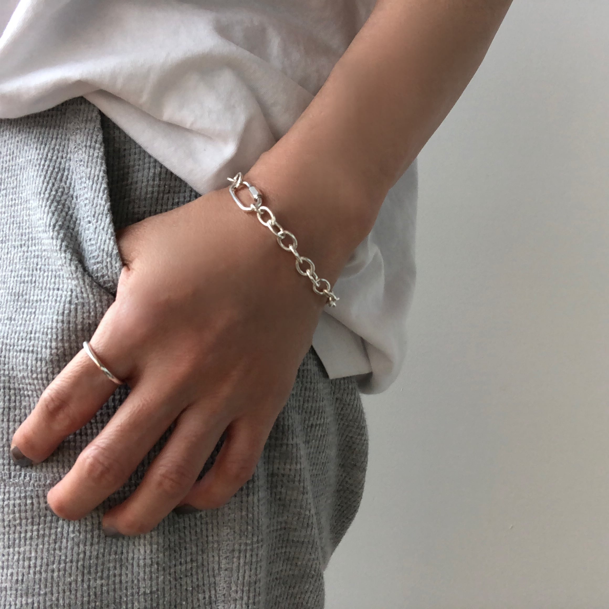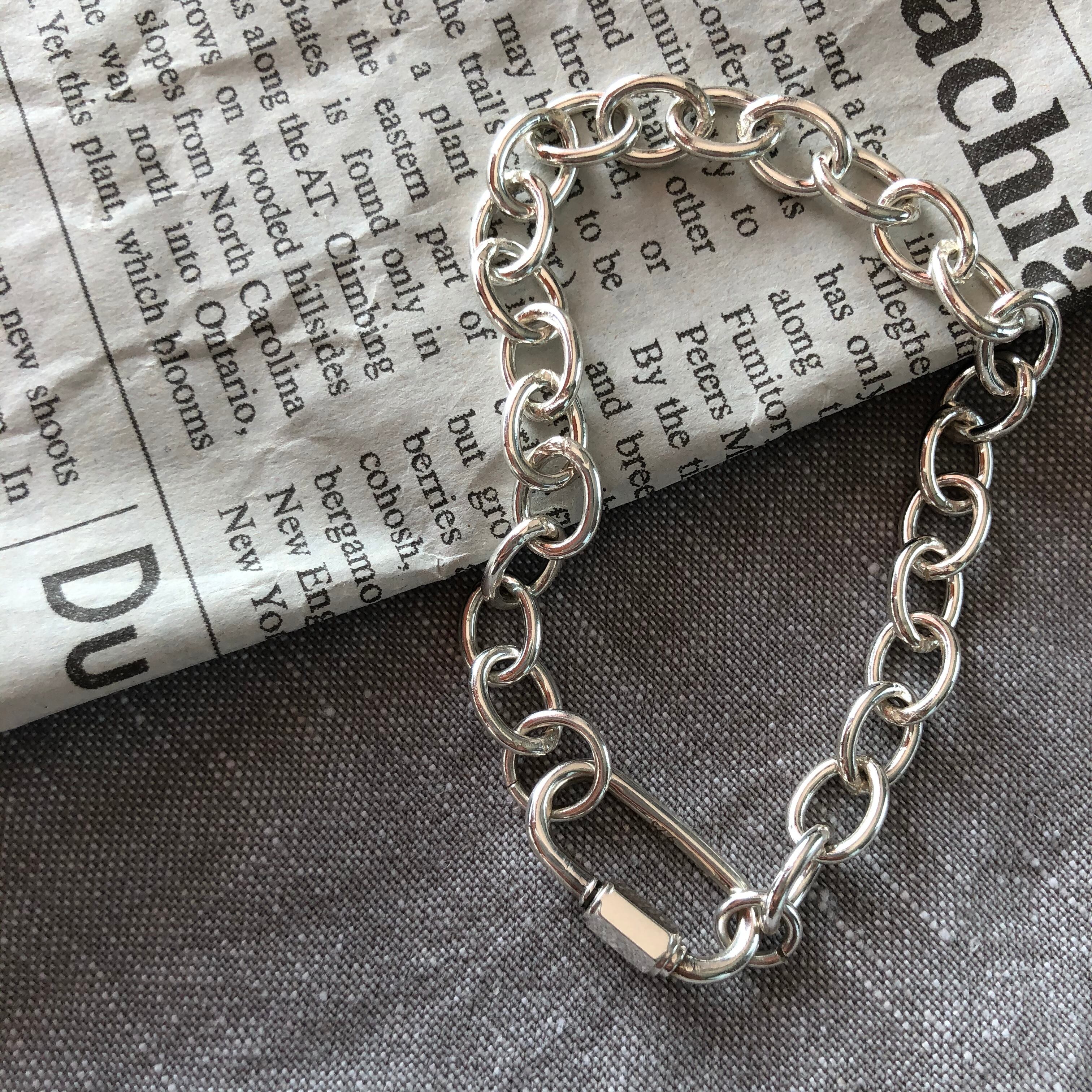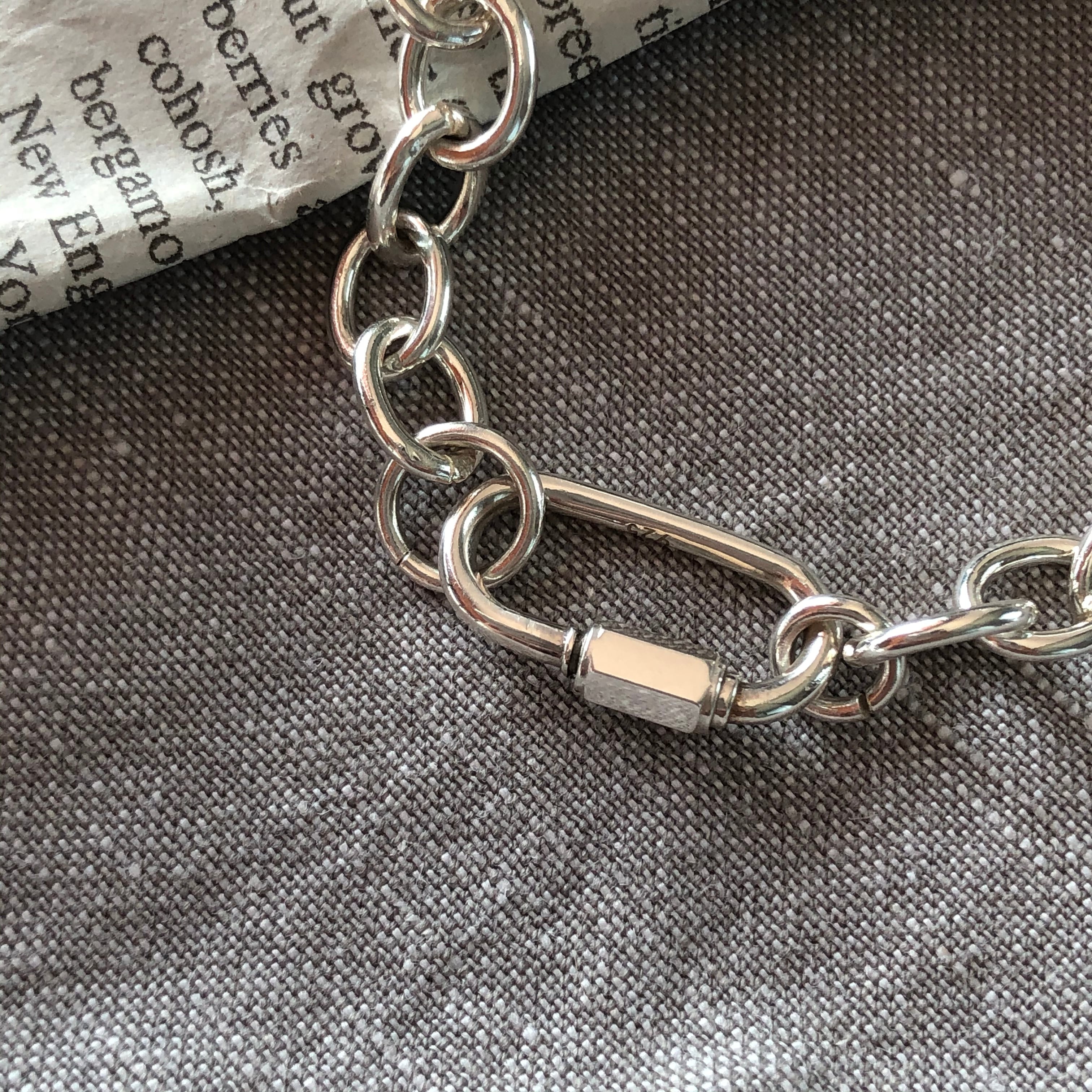 太くもなく細くもないチェーンブレスはどんなコーデにでも合わせやすく、そのうえ留め具がネジ式ホルダーになっていてとてもオシャレです★