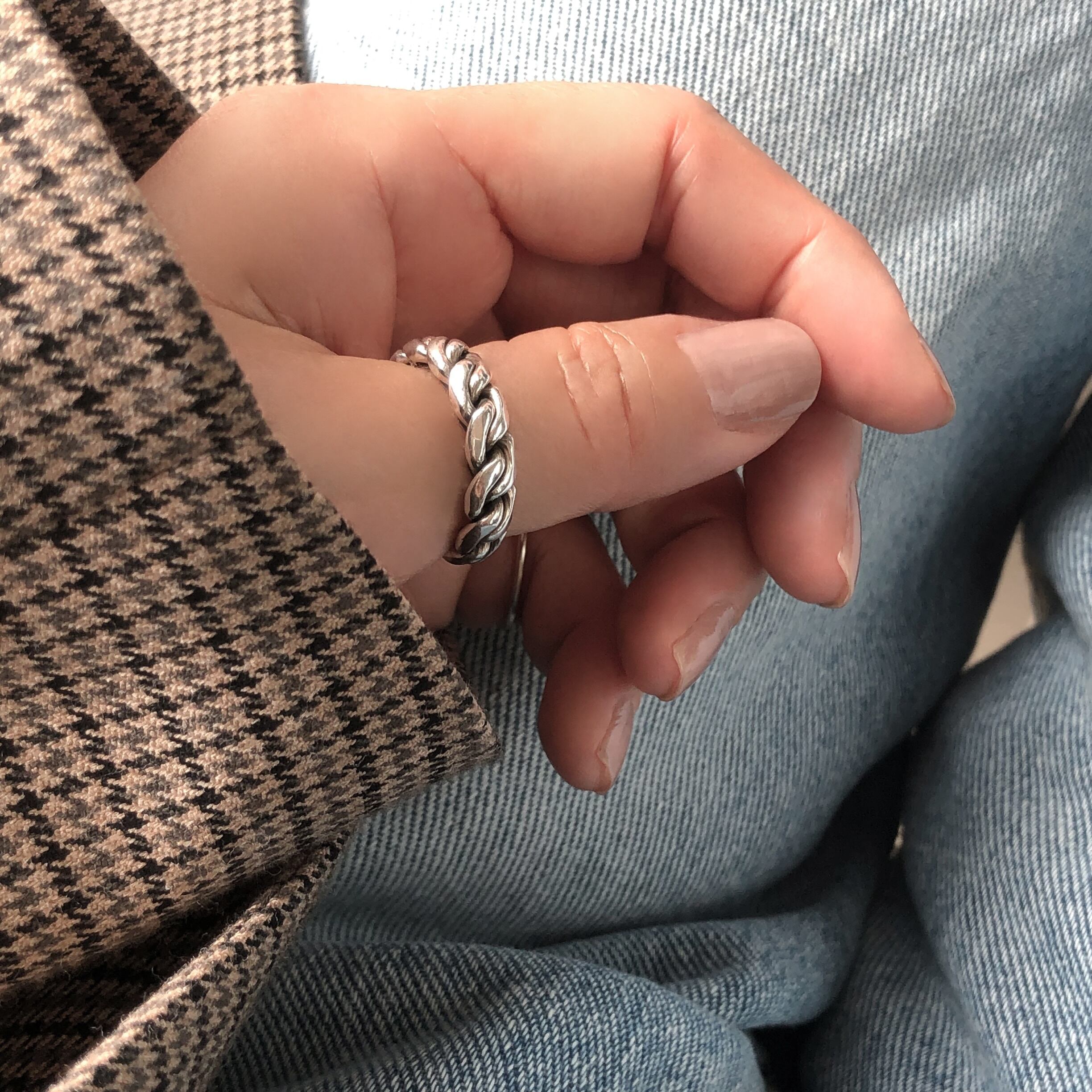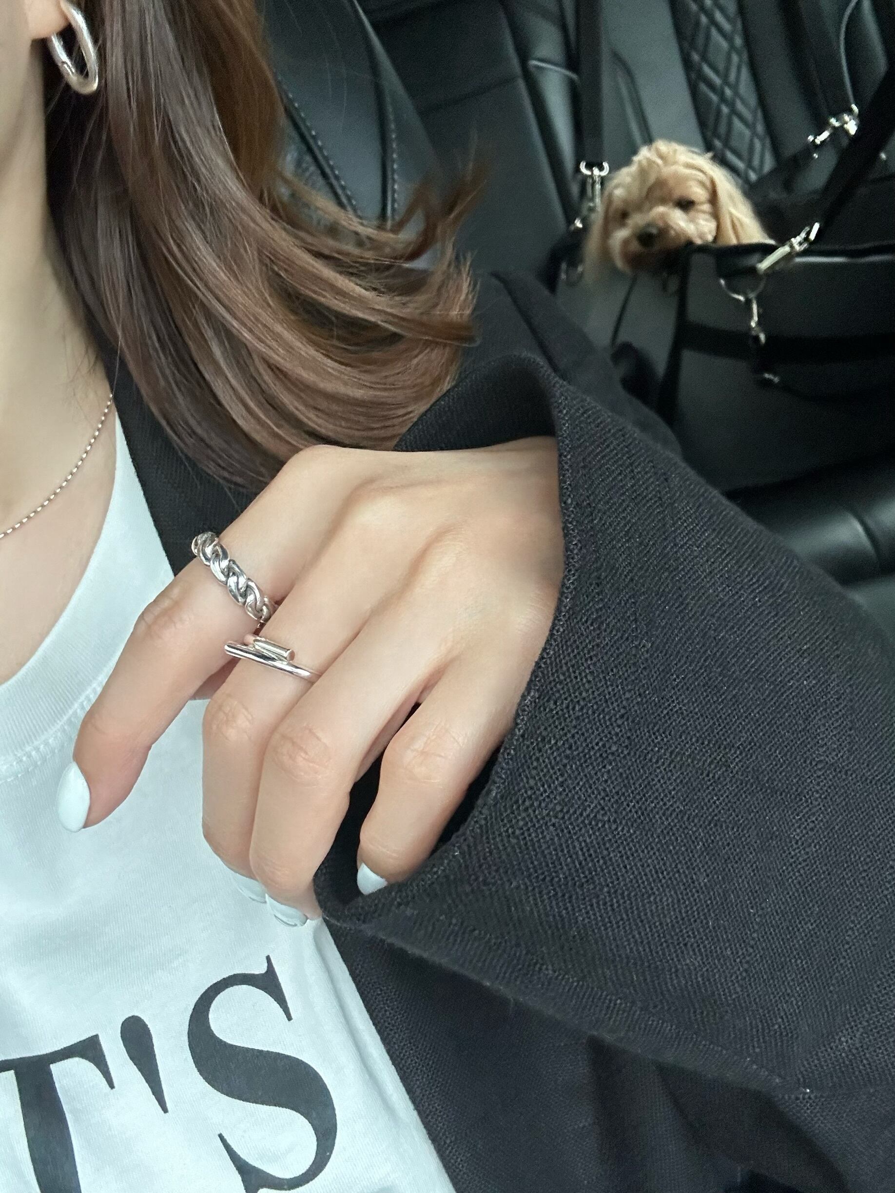 シルバー925素材で作られた太めのチェーンが特徴的なリングです。誰でも簡単にサイズ調節が可能で、男女問わずお使いいただけるユニセックスアイテムです。スタイリッシュなデザインが、おしゃれ度をグッと引き立て身に着けるだけで、自信とスタイルが演出されること間違いなし!シンプルなお洋服にアクセントをプラスしてくれることでしょう。日常使いから特別な日まで、幅広いシーンで活躍してくれるリングです。